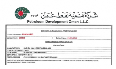 近日,星空体育管件被正式授予“阿曼石油开发公司(以下简称PDO)批准供应商证书”,批准包括了奥氏体不锈钢、双相钢,超级双相钢和镍基合金等材质无缝和焊接管件,